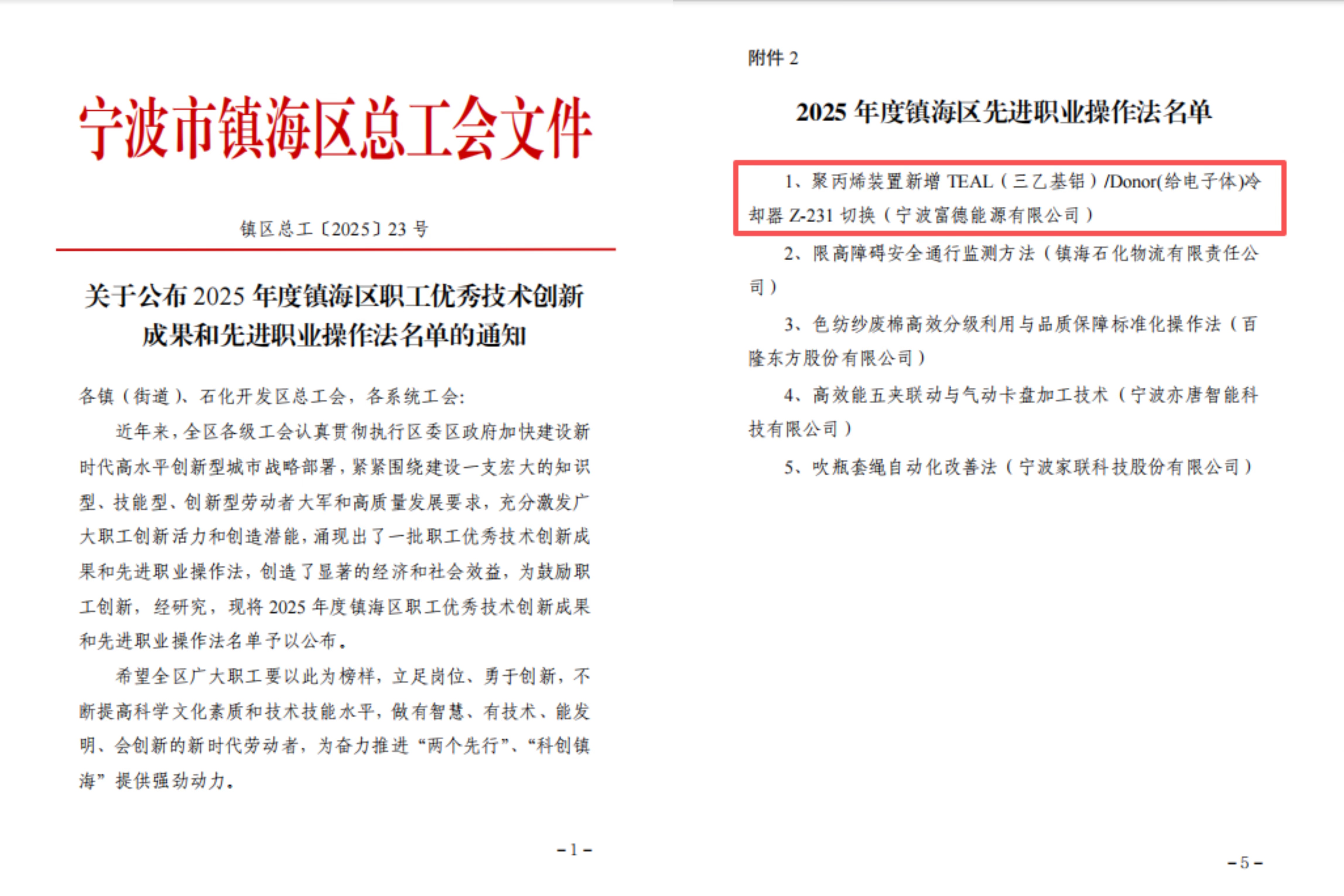 近日,宁波市镇海区总工会公布了关于2025年度镇海区职工优秀技术创新成果和先进职业操作法名单......
